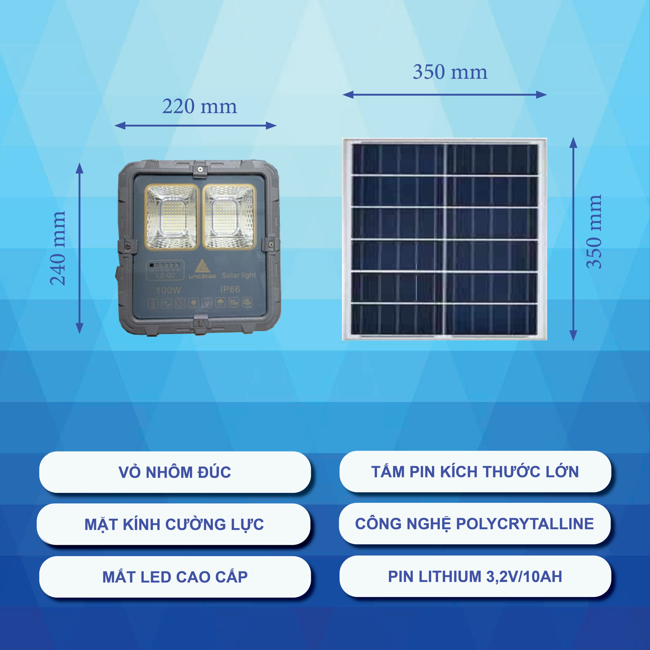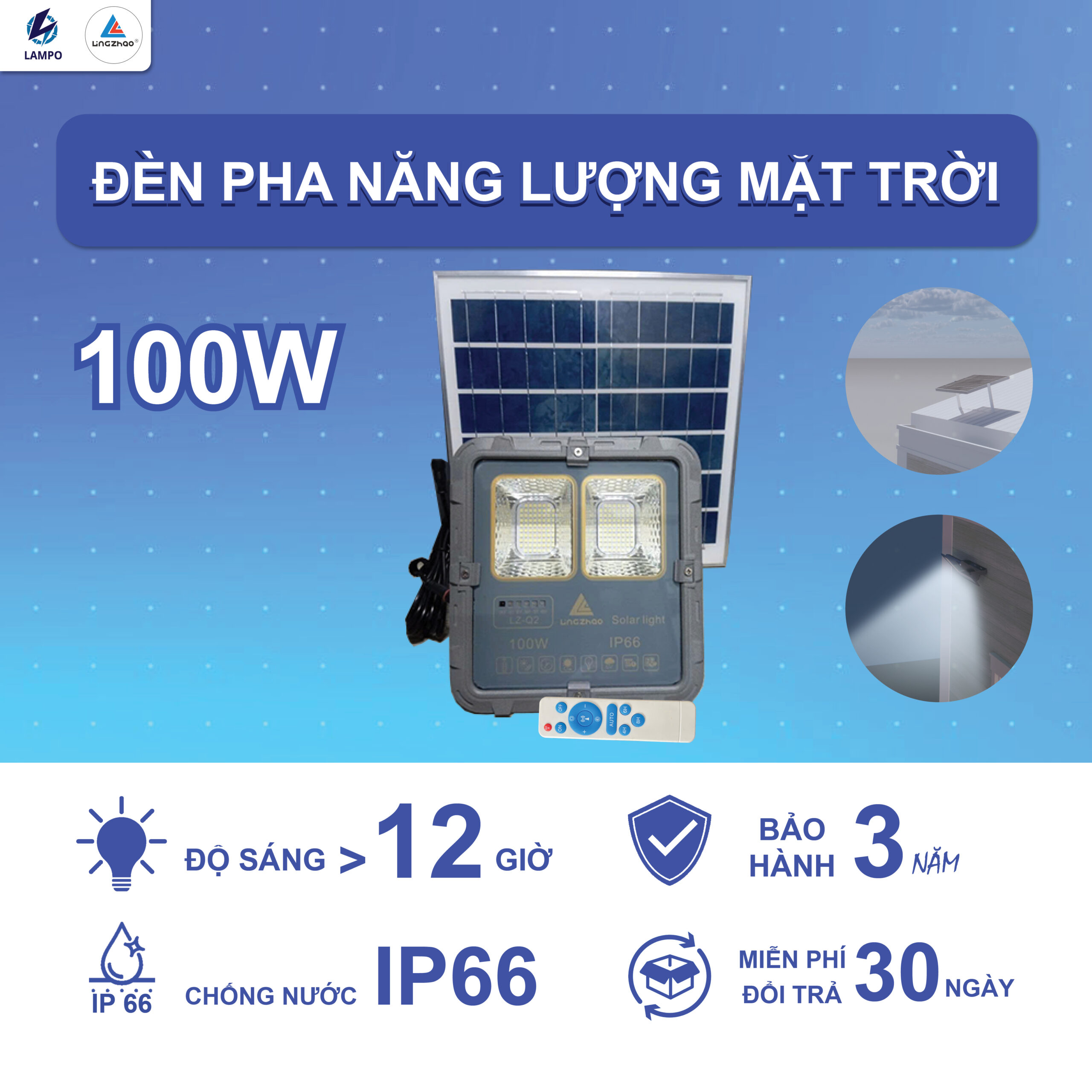 - Sản phẩm: Đèn pha năng lượng mặt trời 100W.