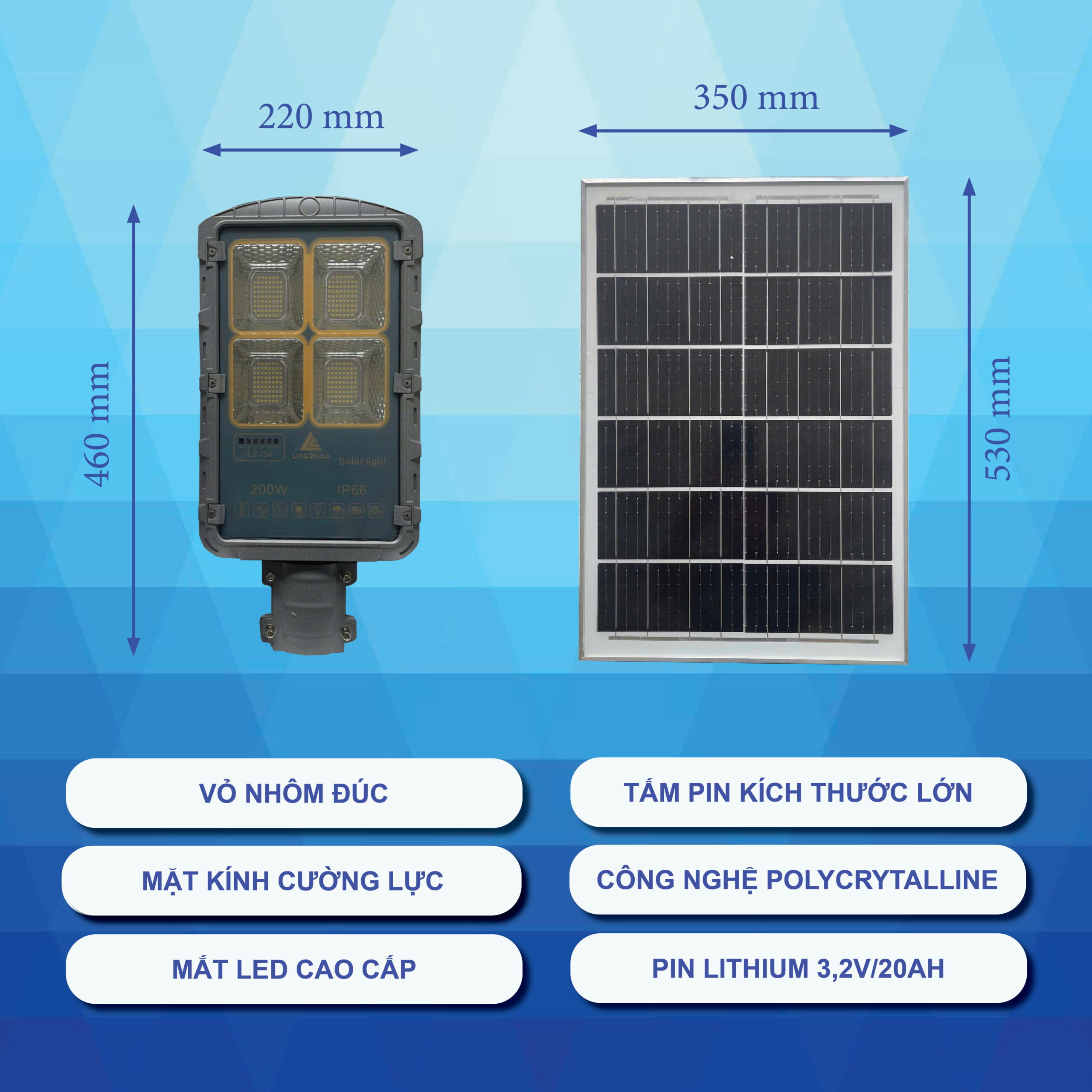 💡 Thông tin sản phẩm: Đèn năng lượng mặt trời 200W đi kèm trụ.